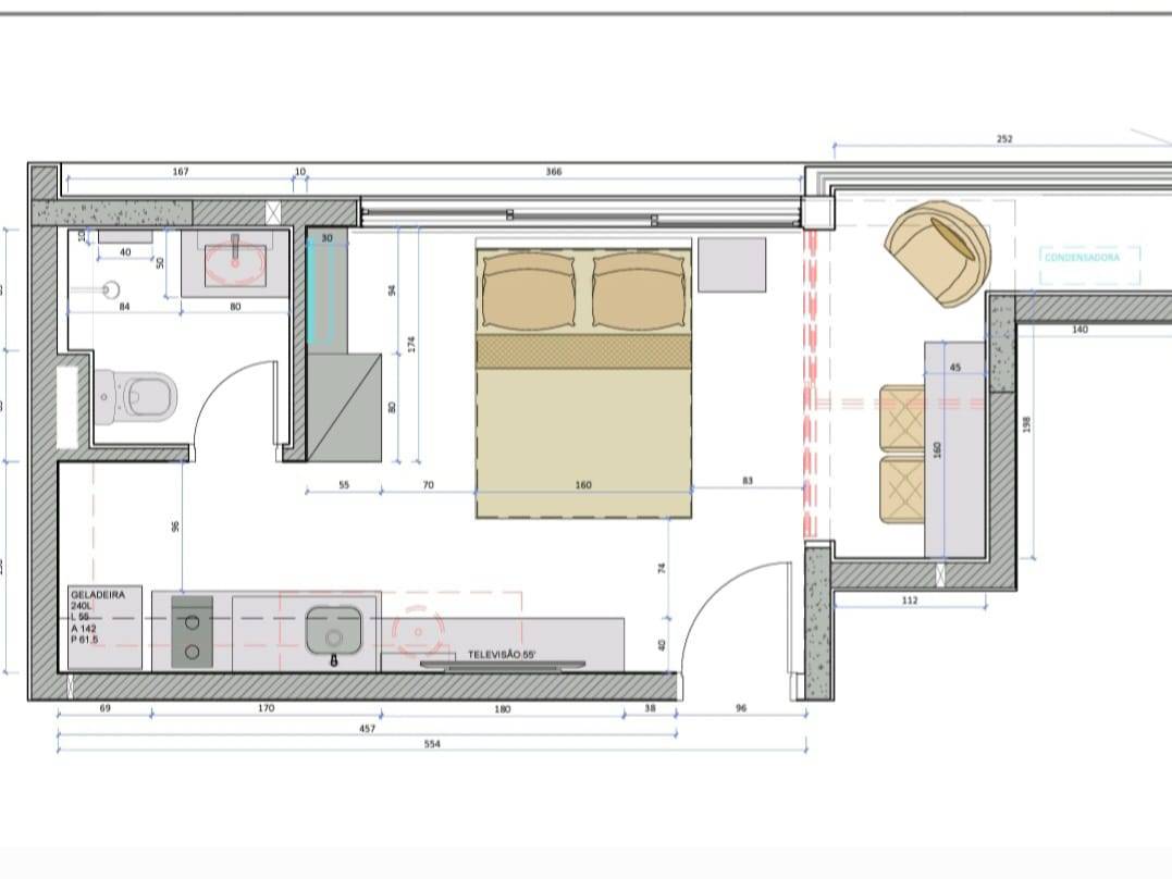 - Ambiente Aconchegante: Totalmente mobiliado, com cama, mesa, cadeira e armários que otimizam o espaço e oferecem praticidade.